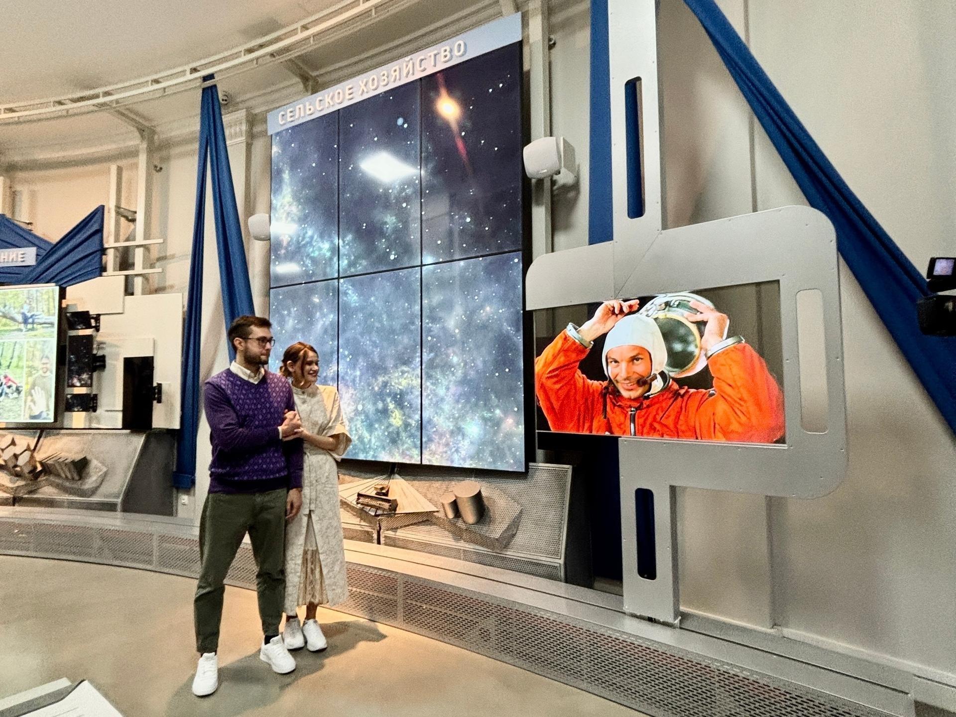Григорий и Анастасия Чумаковы зарегистрировали брак по проекту «Новые места для счастья» от ЗАГСа, который позволяет проводить торжества в нестандартных локациях. Роль официального лица на церемонии исполнил сгенерированный ИИ образ Юрия Гагарина, выбранный самой парой.